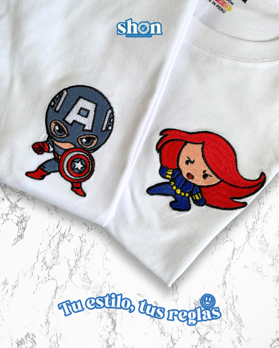 Estas poleras combinan un estilo urbano y minimalista con un bordado sutil y lleno de significado. El diseño presenta dos personajes