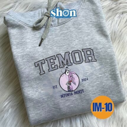 Polera con capucha con un diseño frontal que combina la palabra “TEMOR” en tipografía fuerte con una ilustración central de estilo