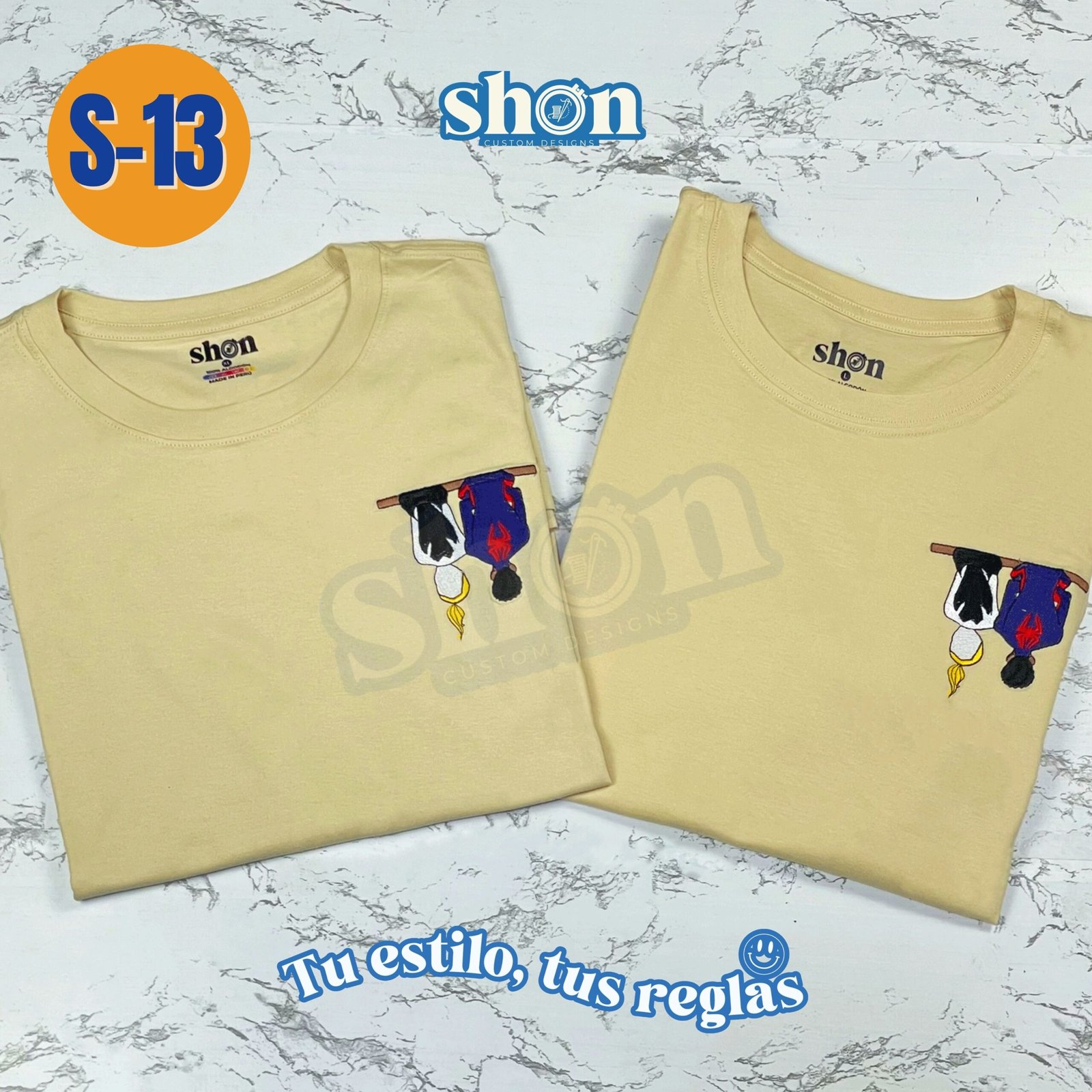 Estas poleras combinan un estilo urbano y minimalista con un bordado sutil y lleno de significado. El diseño presenta dos personajes