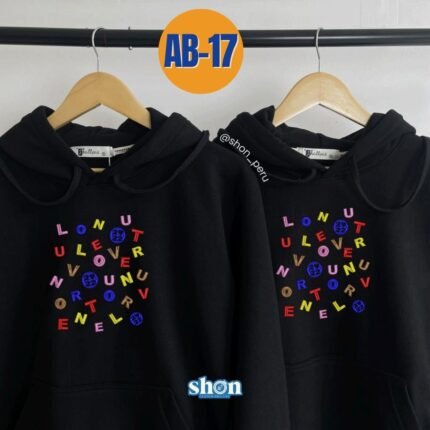 Set de poleras con capucha confeccionadas en algodón suave y abrigador, ideales para compartir en pareja o con alguien especial.