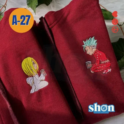 Set de poleras confeccionadas en algodón suave y abrigador, ideales para compartir en pareja. Cada polera presenta un bordado que