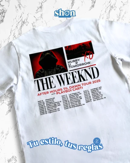 Par de poleras con un diseño frontal que destaca la palabra “TRISTEZA” acompañada de una ilustración sutil que transmite emoción,